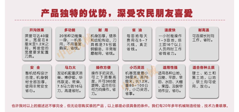 開溝機先進的生產設備及完善的檢測手段。公司始終以以人為本,科技領先,誠信經營。公司熱愛公益事業,